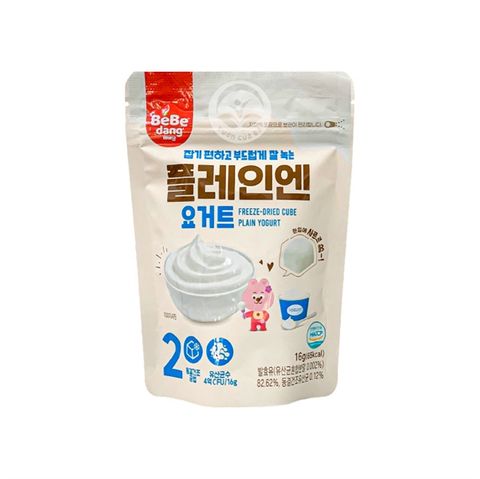 Sữa chua là loại thực phẩm dinh dưỡng vô cùng có lợi cho hệ tiêu hóa của tất cả mọi người, đặc biệt là trẻ em. Đến từ Hàn Quốc, sữa chua khô Bebedang vị nguyên chất 16g mang tới một lựa chọn mới mẻ và vô cùng độc đáo để mẹ đổi bữa cho bé. Sản phẩm là dạng yogurt khô (còn gọi là bánh sữa chua khô hay bánh yogurt khô) được đóng thành từng viên như kẹo cho bé. Bánh có vị sữa chua truyền thống, sau khi tan trong miệng sẽ cảm nhận được sự béo ngọt của sữa, chắc chắn các bé sẽ vô cùng thích thú.